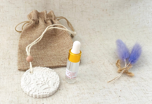 Mettre 6 à 7 gouttes tous les 10 jours environ sur un galet diffuseur. Ces parfums sont idéaux pour profiter de leurs vertus dans les petits espaces tels que les voitures, les toilettes, les armoires etc..