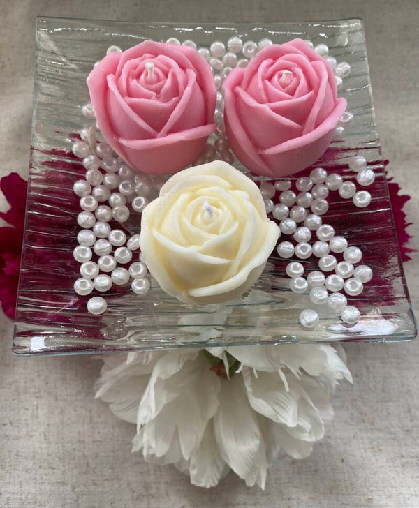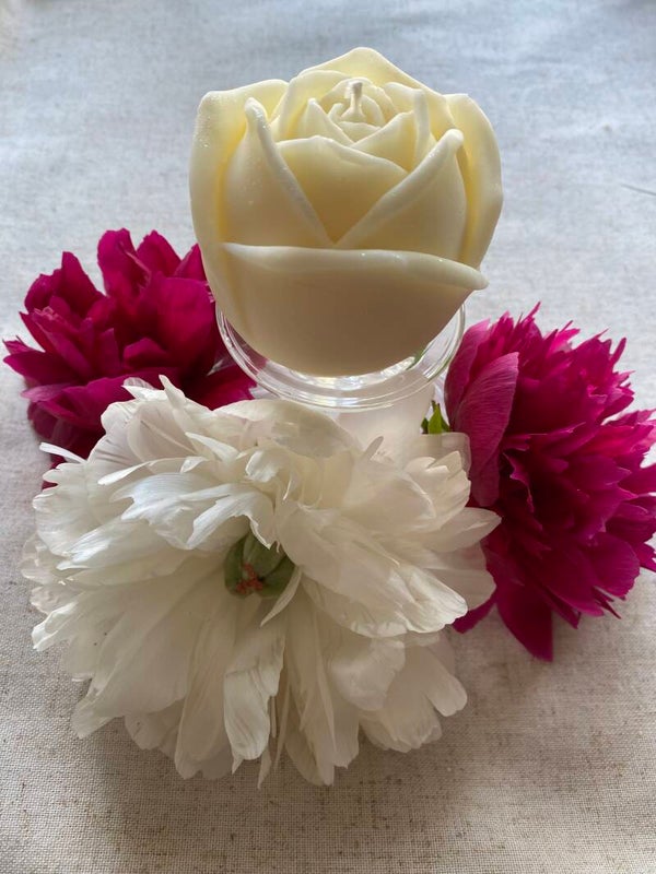 Mes bougies moulées sont composées de cire de soja et de colorants en grains ou poudre de mica.